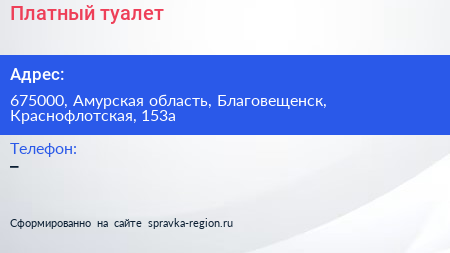 Платный туалет по адресу 675000, Амурская область, Благовещенск, Краснофлотская, 153а в дальнейшем Организация, размещена в следующих категориях: