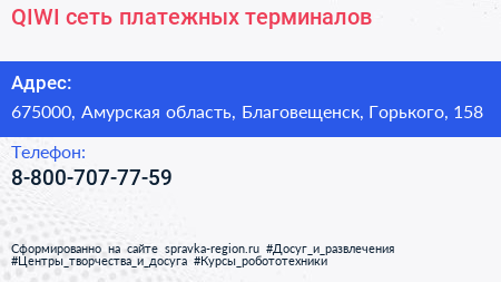 QIWI, сеть платежных терминалов по адресу 675000, Амурская область, Благовещенск, Горького, 158 в дальнейшем Организация, размещена в следующих категориях: