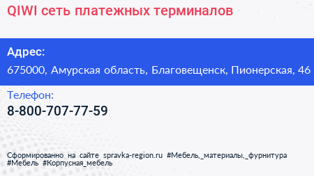 QIWI, сеть платежных терминалов по адресу 675000, Амурская область, Благовещенск, Пионерская, 46 в дальнейшем Организация, размещена в следующих категориях: