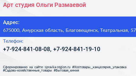 Арт-студия Ольги Размаевой по адресу 675000, Амурская область, Благовещенск, Театральная, 57 в дальнейшем Организация, размещена в следующих категориях: