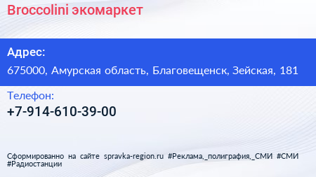 Broccolini, экомаркет по адресу 675000, Амурская область, Благовещенск, Зейская, 181 в дальнейшем Организация, размещена в следующих категориях: