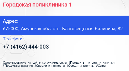 Городская поликлиника №1 по адресу 675000, Амурская область, Благовещенск, Калинина, 82 в дальнейшем Организация, размещена в следующих категориях: