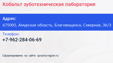 Кобальт, зуботехническая лаборатория по адресу 675005, Амурская область, Благовещенск, Северная, 36/3 в дальнейшем Организация, размещена в следующих категориях: