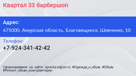 Квартал №33, барбершоп по адресу 675000, Амурская область, Благовещенск, Шевченко, 10 в дальнейшем Организация, размещена в следующих категориях: