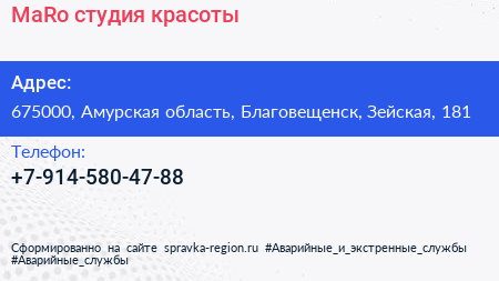 MaRo, студия красоты по адресу 675000, Амурская область, Благовещенск, Зейская, 181 в дальнейшем Организация, размещена в следующих категориях: