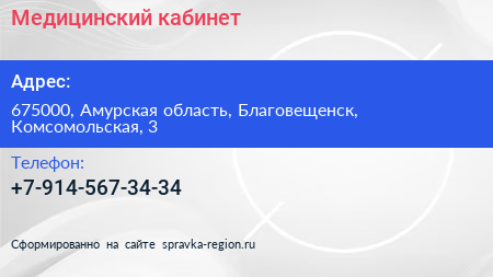 Медицинский кабинет по адресу 675000, Амурская область, Благовещенск, Комсомольская, 3 в дальнейшем Организация, размещена в следующих категориях: