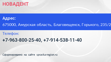 НОВАДЕНТ по адресу 675000, Амурская область, Благовещенск, Горького, 235/2 в дальнейшем Организация, размещена в следующих категориях: