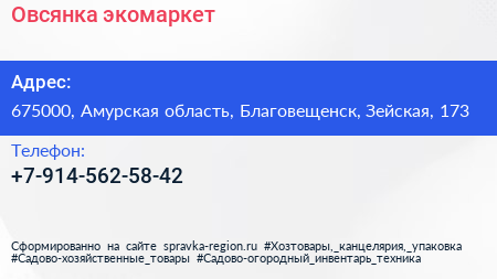 Овсянка, экомаркет по адресу 675000, Амурская область, Благовещенск, Зейская, 173 в дальнейшем Организация, размещена в следующих категориях: