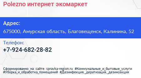 Polezno, интернет-экомаркет по адресу 675000, Амурская область, Благовещенск, Калинина, 52 в дальнейшем Организация, размещена в следующих категориях: