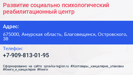 Развитие, социально-психологический реабилитационный центр по адресу 675000, Амурская область, Благовещенск, Островского, 38 в дальнейшем Организация, размещена в следующих категориях: