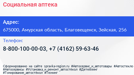 Социальная аптека по адресу 675000, Амурская область, Благовещенск, Зейская, 256 в дальнейшем Организация, размещена в следующих категориях: