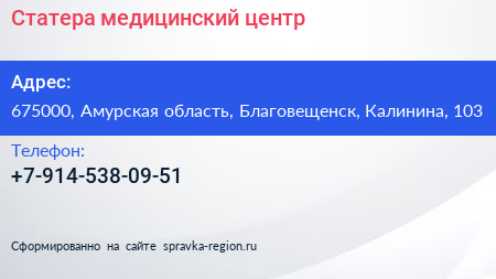 Статера, медицинский центр по адресу 675000, Амурская область, Благовещенск, Калинина, 103 в дальнейшем Организация, размещена в следующих категориях: