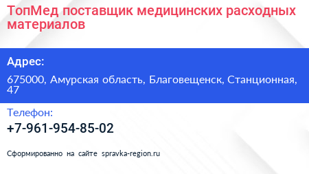 ТопМед, поставщик медицинских расходных материалов по адресу 675000, Амурская область, Благовещенск, Станционная, 47 в дальнейшем Организация, размещена в следующих категориях: