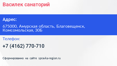 Василек, санаторий по адресу 675000, Амурская область, Благовещенск, Комсомольская, 30Б в дальнейшем Организация, размещена в следующих категориях: