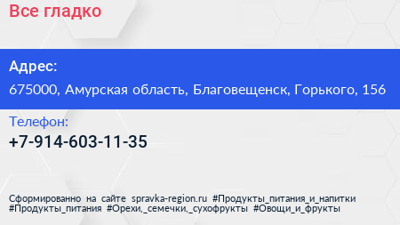 Все гладко по адресу 675000, Амурская область, Благовещенск, Горького, 156 в дальнейшем Организация, размещена в следующих категориях: