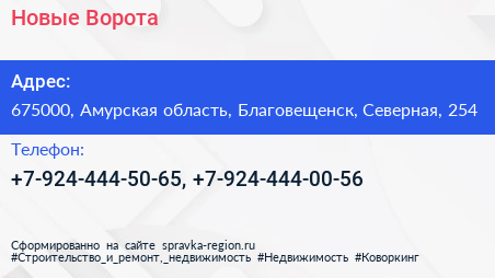 Новые Ворота по адресу 675000, Амурская область, Благовещенск, Северная, 254 в дальнейшем Организация, размещена в следующих категориях: