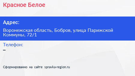 Красное & Белое по адресу Воронежская область, Бобров, улица Парижской Коммуны, 72/1 в дальнейшем Организация, размещена в следующих категориях: