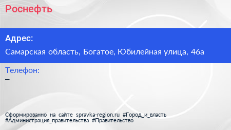 Роснефть по адресу Самарская область, Богатое, Юбилейная улица, 46а в дальнейшем Организация, размещена в следующих категориях: