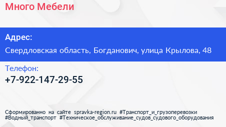 Много Мебели по адресу Свердловская область, Богданович, улица Крылова, 48 в дальнейшем Организация, размещена в следующих категориях: