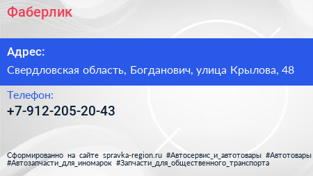 Фаберлик по адресу Свердловская область, Богданович, улица Крылова, 48 в дальнейшем Организация, размещена в следующих категориях: