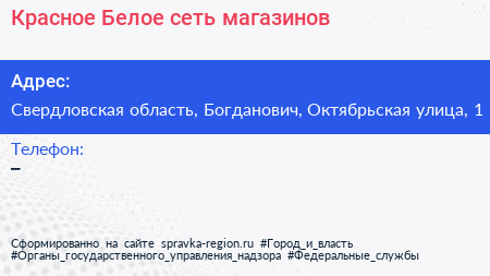 Красное & Белое, сеть магазинов по адресу Свердловская область, Богданович, Октябрьская улица, 1 в дальнейшем Организация, размещена в следующих категориях:
