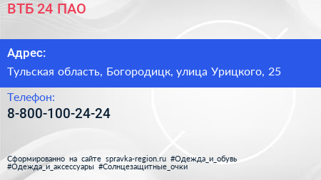ВТБ 24, ПАО по адресу Тульская область, Богородицк, улица Урицкого, 25 в дальнейшем Организация, размещена в следующих категориях: