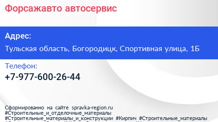 Форсажавто, автосервис по адресу Тульская область, Богородицк, Спортивная улица, 1Б в дальнейшем Организация, размещена в следующих категориях: