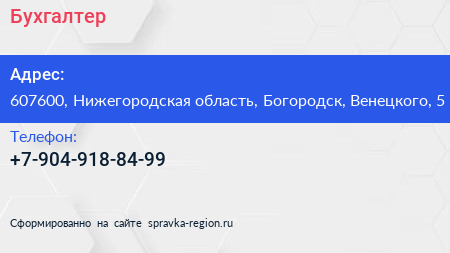 Бухгалтер+ по адресу 607600, Нижегородская область, Богородск, Венецкого, 5 в дальнейшем Организация, размещена в следующих категориях: