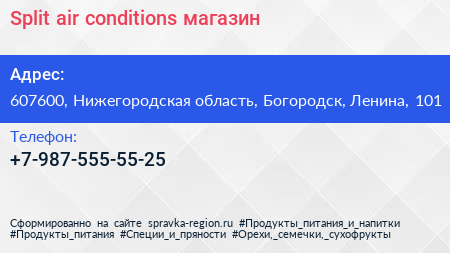 Split air conditions, магазин по адресу 607600, Нижегородская область, Богородск, Ленина, 101 в дальнейшем Организация, размещена в следующих категориях: