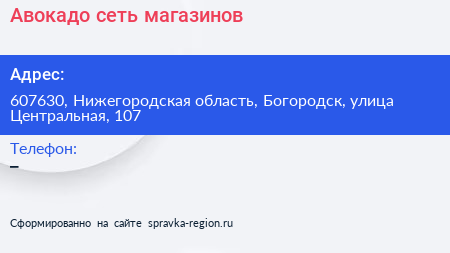 Авокадо, сеть магазинов по адресу 607630, Нижегородская область, Богородск, улица Центральная, 107 в дальнейшем Организация, размещена в следующих категориях: