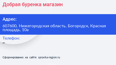 Добрая буренка, магазин по адресу 607600, Нижегородская область, Богородск, Красная площадь, 10а в дальнейшем Организация, размещена в следующих категориях: