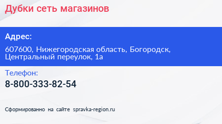 Дубки, сеть магазинов по адресу 607600, Нижегородская область, Богородск, Центральный переулок, 1а в дальнейшем Организация, размещена в следующих категориях: