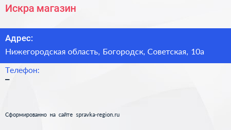 Искра, магазин по адресу Нижегородская область, Богородск, Советская, 10а в дальнейшем Организация, размещена в следующих категориях: