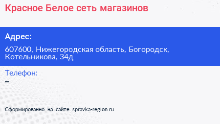 Красное & Белое, сеть магазинов по адресу 607600, Нижегородская область, Богородск, Котельникова, 34д в дальнейшем Организация, размещена в следующих категориях: