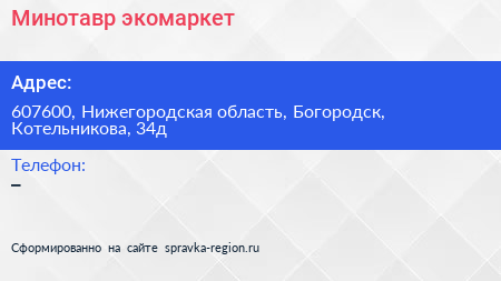 Минотавр, экомаркет по адресу 607600, Нижегородская область, Богородск, Котельникова, 34д в дальнейшем Организация, размещена в следующих категориях: