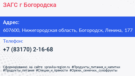 ЗАГС г. Богородска по адресу 607600, Нижегородская область, Богородск, Ленина, 177 в дальнейшем Организация, размещена в следующих категориях: