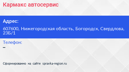 Кармакс, автосервис по адресу 607600, Нижегородская область, Богородск, Свердлова, 23Б/1 в дальнейшем Организация, размещена в следующих категориях: