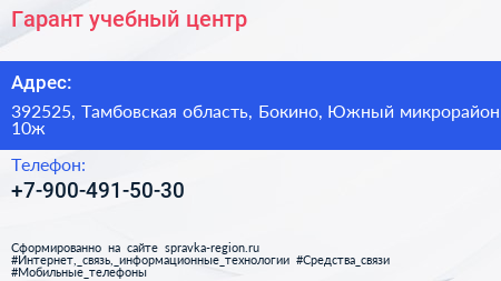 Гарант, учебный центр по адресу 392525, Тамбовская область, Бокино, Южный микрорайон, 10ж в дальнейшем Организация, размещена в следующих категориях: