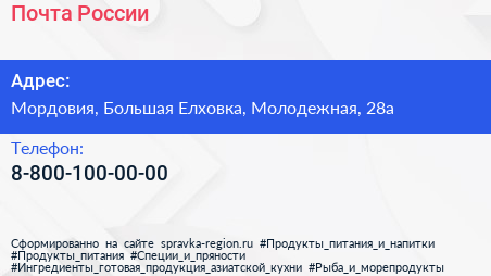 Почта России по адресу Мордовия, Большая Елховка, Молодежная, 28а в дальнейшем Организация, размещена в следующих категориях: