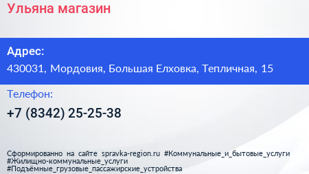 Ульяна, магазин по адресу 430031, Мордовия, Большая Елховка, Тепличная, 15 в дальнейшем Организация, размещена в следующих категориях:
