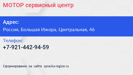 МОТОР, сервисный центр по адресу 48, Центральная улица, СНТ Ломоносовец, Дубки, Пениковское сельское поселение, Ломоносовский район, Ленинградская область, Северо-Западный федеральный округ, 188531, Россия в дальнейшем Организация, размещена в следующих категориях: