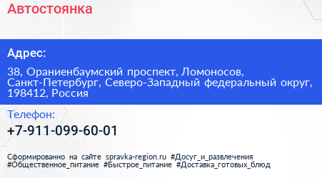 Автостоянка по адресу 38, Ораниенбаумский проспект, Ломоносов, Санкт-Петербург, Северо-Западный федеральный округ, 198412, Россия в дальнейшем Организация, размещена в следующих категориях: