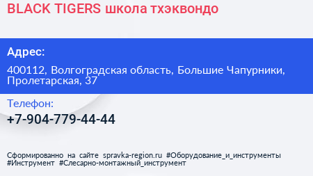 BLACK TIGERS, школа тхэквондо по адресу 400112, Волгоградская область, Большие Чапурники, Пролетарская, 37 в дальнейшем Организация, размещена в следующих категориях: