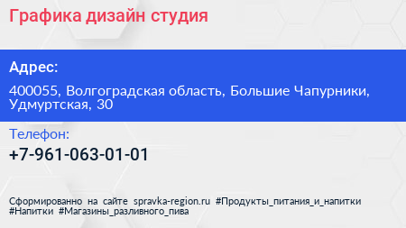 Графика, дизайн-студия по адресу 400055, Волгоградская область, Большие Чапурники, Удмуртская, 30 в дальнейшем Организация, размещена в следующих категориях: