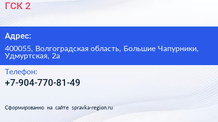 ГСК №2 по адресу 400055, Волгоградская область, Большие Чапурники, Удмуртская, 2а в дальнейшем Организация, размещена в следующих категориях: