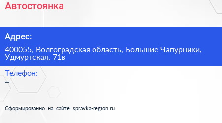 Автостоянка по адресу 400055, Волгоградская область, Большие Чапурники, Удмуртская, 71в в дальнейшем Организация, размещена в следующих категориях: