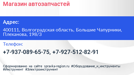 Магазин автозапчастей по адресу 400111, Волгоградская область, Большие Чапурники, Плеханова, 198/3 в дальнейшем Организация, размещена в следующих категориях: