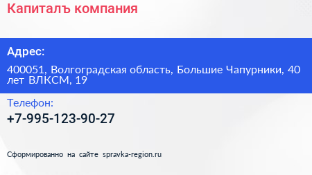 Капиталъ, компания по адресу 400051, Волгоградская область, Большие Чапурники, 40 лет ВЛКСМ, 19 в дальнейшем Организация, размещена в следующих категориях: