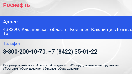 Роснефть по адресу 433320, Ульяновская область, Большие Ключищи, Ленина, 1а в дальнейшем Организация, размещена в следующих категориях: