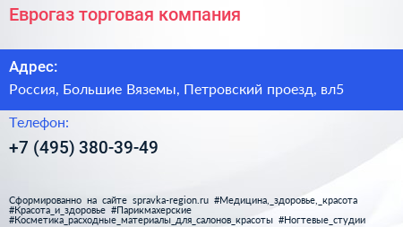 Еврогаз, торговая компания по адресу Ozon, вл5 с2, Петровский проезд, Городок-17, Школьный, Большие Вязёмы, Одинцовский городской округ, Московская область, Центральный федеральный округ, 143051, Россия в дальнейшем Организация, размещена в следующих категориях: